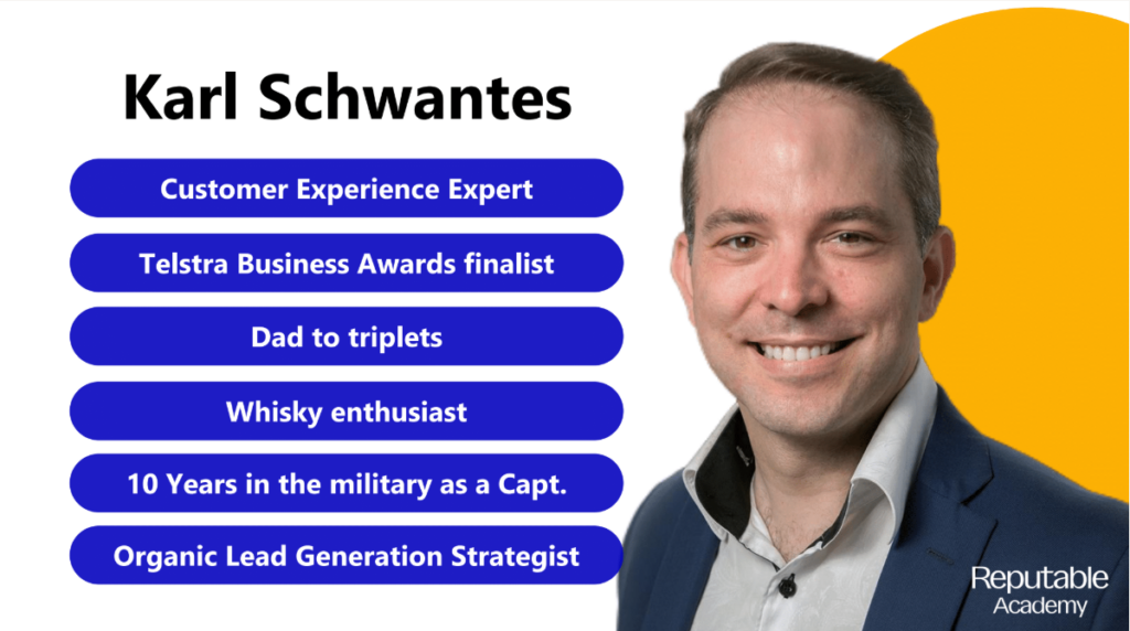 Karl Schwantes is not just a Organic Lead Generation Strategist and Telstra Business Awards Finalist—he’s a battle-tested strategist with 10 years of military leadership experience, a dedicated dad to triplets, and a master of organic lead generation.